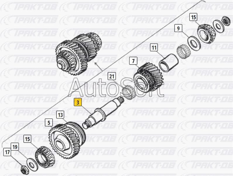 Вал промежуточный раздаточной коробки 43114-оригинал (завод) 43114-1802085-00